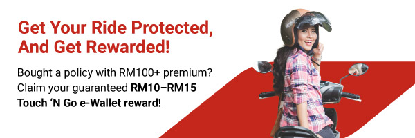 If your motorcycle premium is RM100 or more, you’re eligible to join and claim RM10 or RM15 Touch ‘n Go eWallet credit.The higher your premium tier, the bigger the reward!